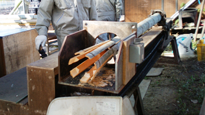 有用部分は集成材材料や竹炭作りに活用します。 |