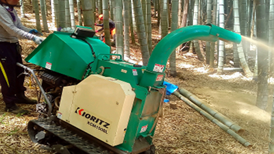 枯れ竹や倒竹を集め粉砕します。 |